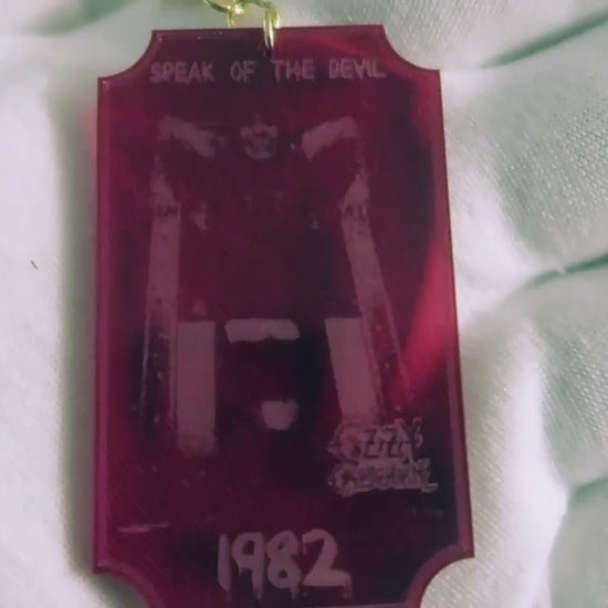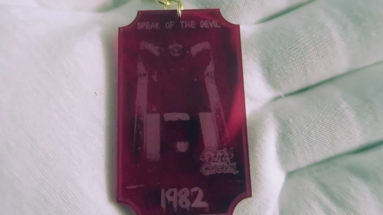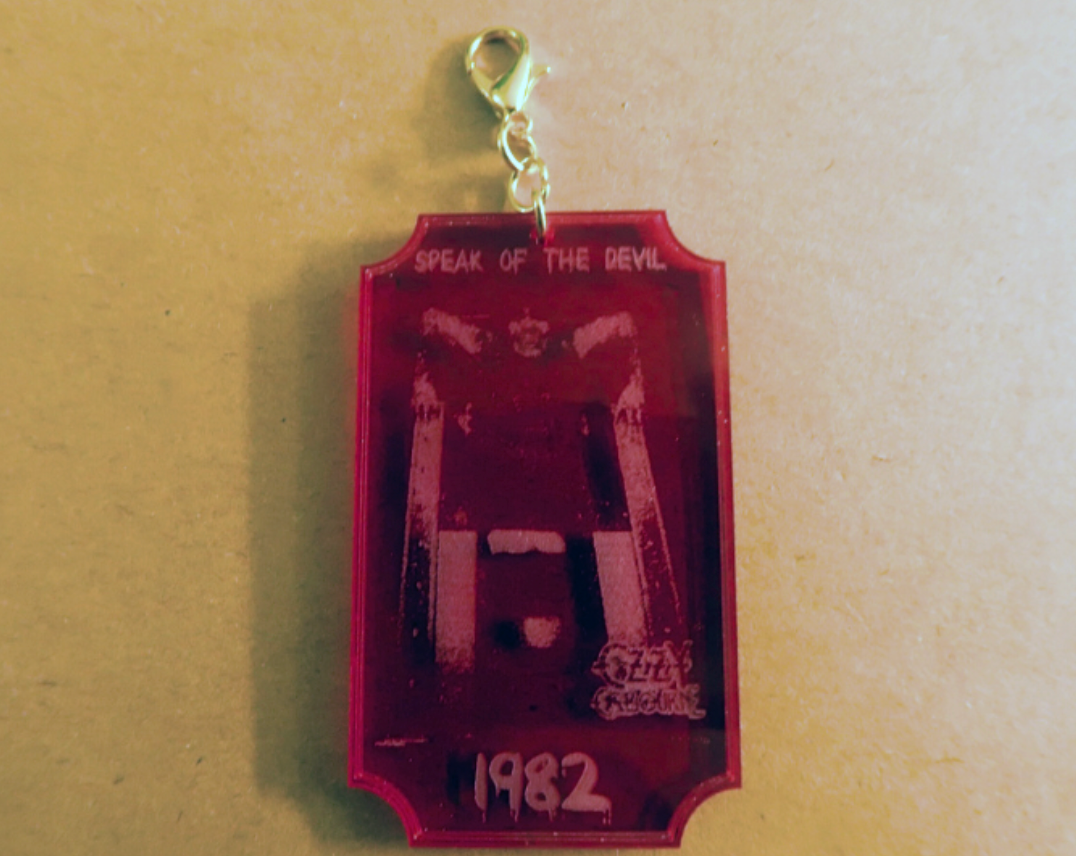 I made some awesome Black Sabbath and Ozzy Osbourne-inspired trinkets! My collection includes keychains and car decor made from translucent purple, and red acrylic. Each piece is a unique tribute to the metal legends. Buy either Black Sabbath pieces, get the free Ozzy keychain, from his 1982 Speak Of The Devil album cover. This special keychain also has a crucifix at the base of the chain!